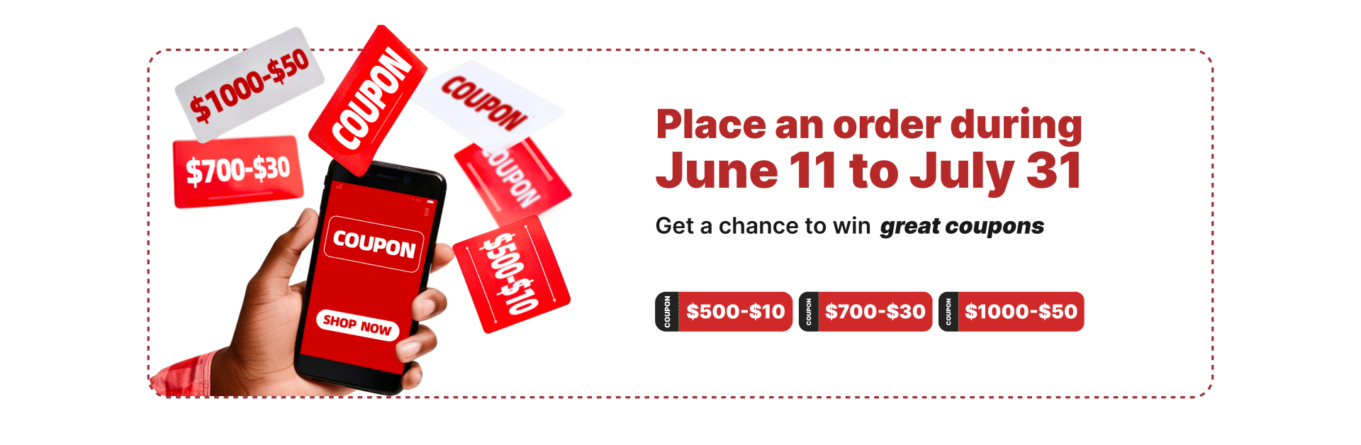 Third prize: $500-$10 coupons